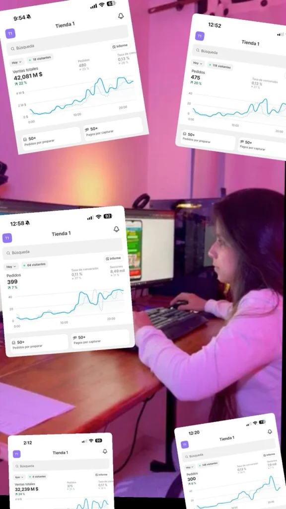 En exactamente 7 días logré mi primera venta y unos días después, logré mi primer producto ganador: facturé 25.000 dólares en menos de tres semanas. Pagué todas mis deudas, armé mi primer setup y comprendí que este negocio no solo funcionaba, era real.